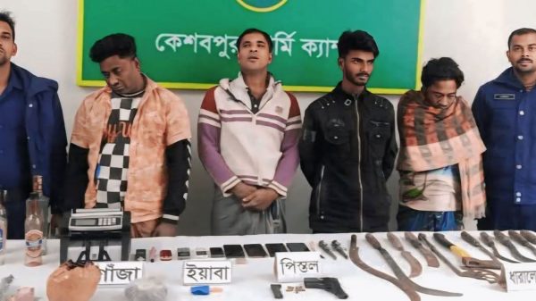 ডি জেড নিউজ ২৪ ডেস্কঃ যশোরের কেশবপুর উপজেলায় যৌথবাহিনীর অভিযানে বিদেশি পিস্তল, গুলি, দেশীয় অস্ত্র, মাদক ও বিভিন্ন অপরাধে ব্যবহৃত সরঞ্জামসহ চারজনকে গ্রেপ্তার করেছে । শুক্রবার (৫ ডিসেম্বর) ভোররাতে উপজেলার আলতাপোল ও ভোগতি গ্রামে গোপন তথ্যের ভিত্তিতে এ